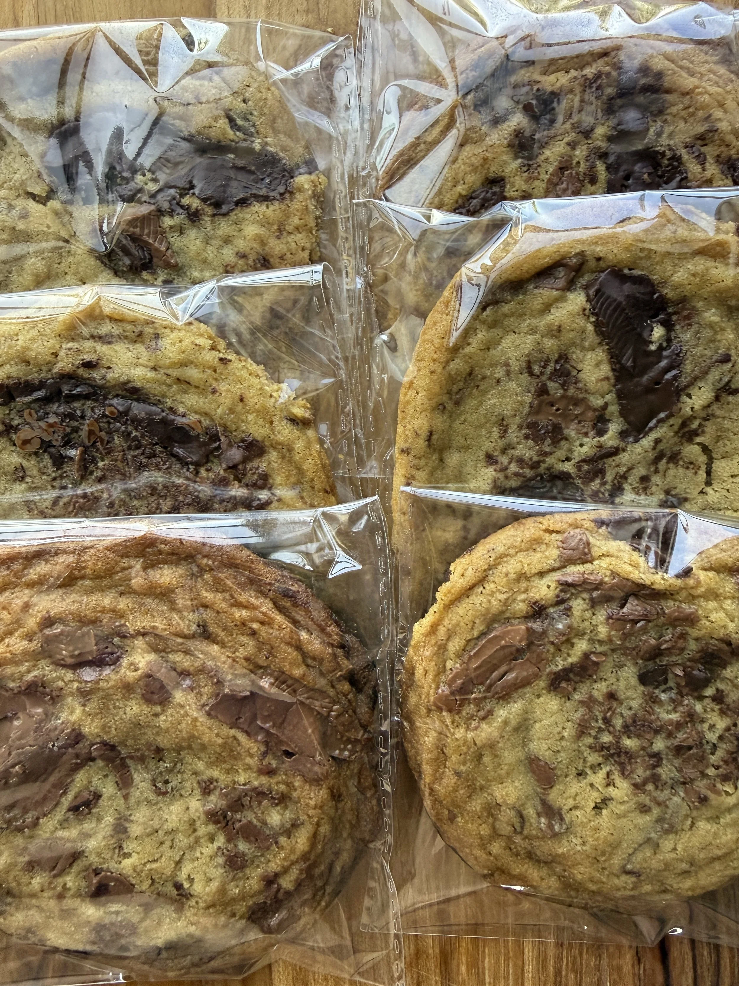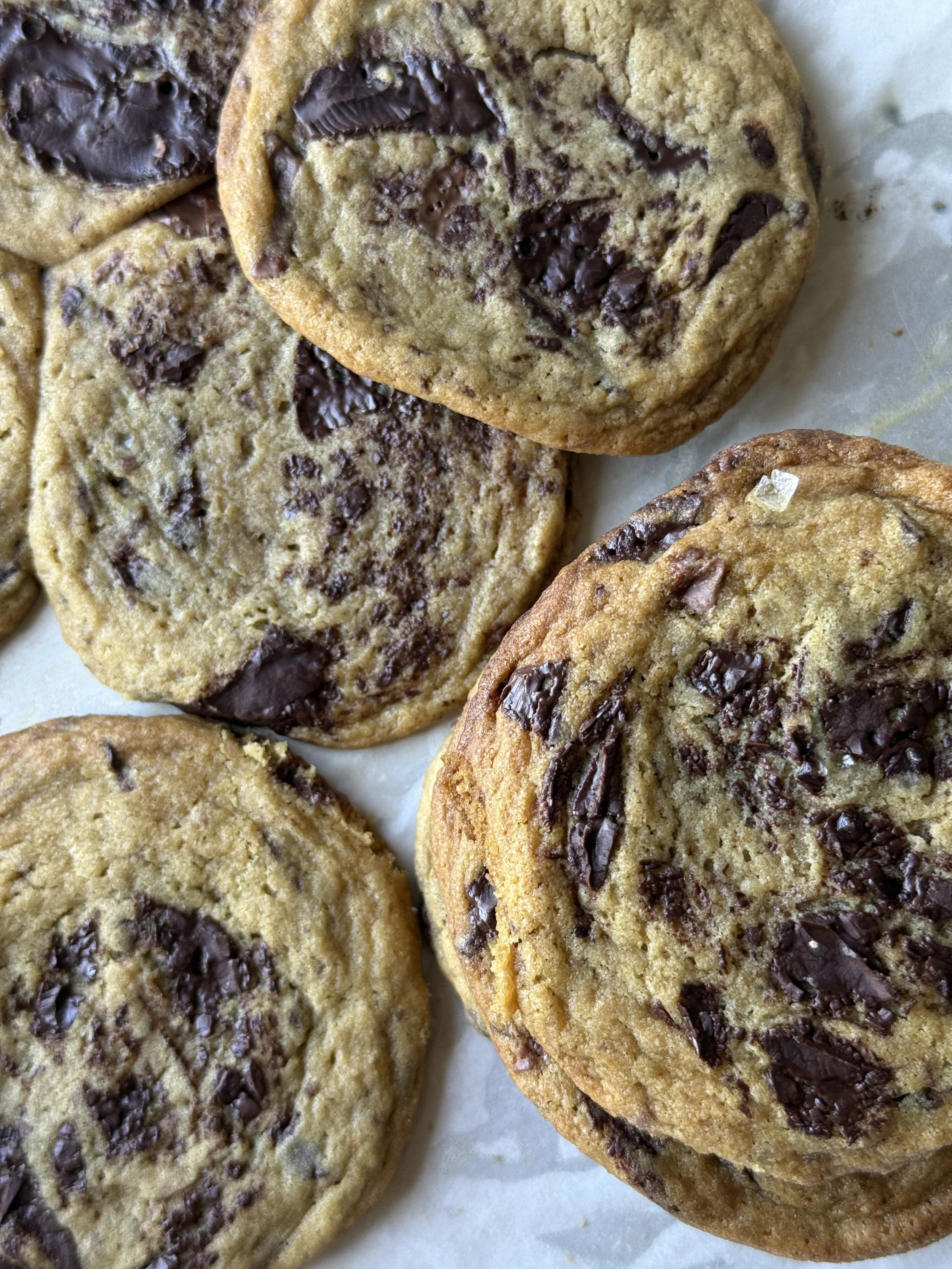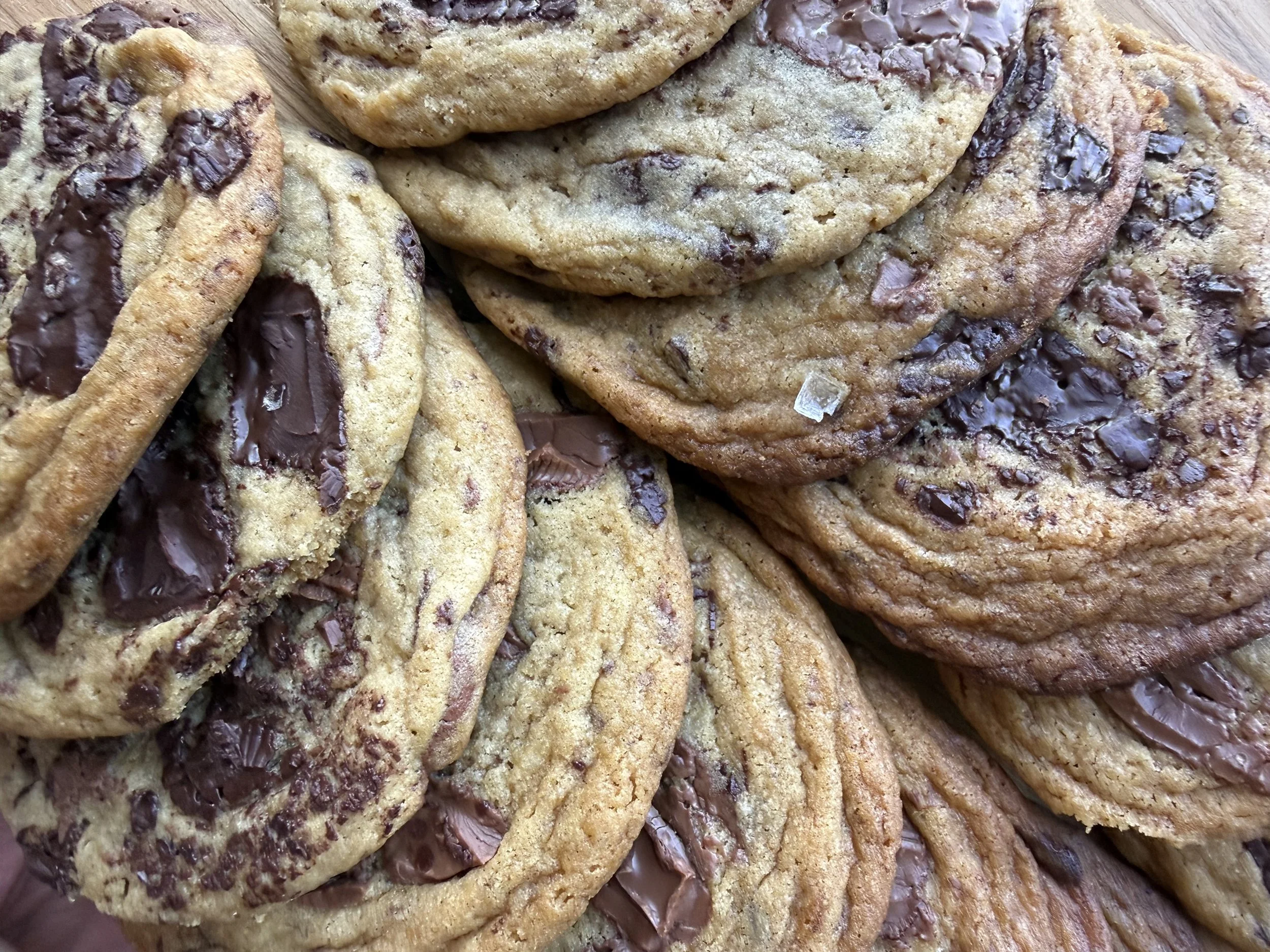 Soft and chewy cookies made with European butter and Belgian dark and milk chocolate. Sprinkled with Maldon sea salt.